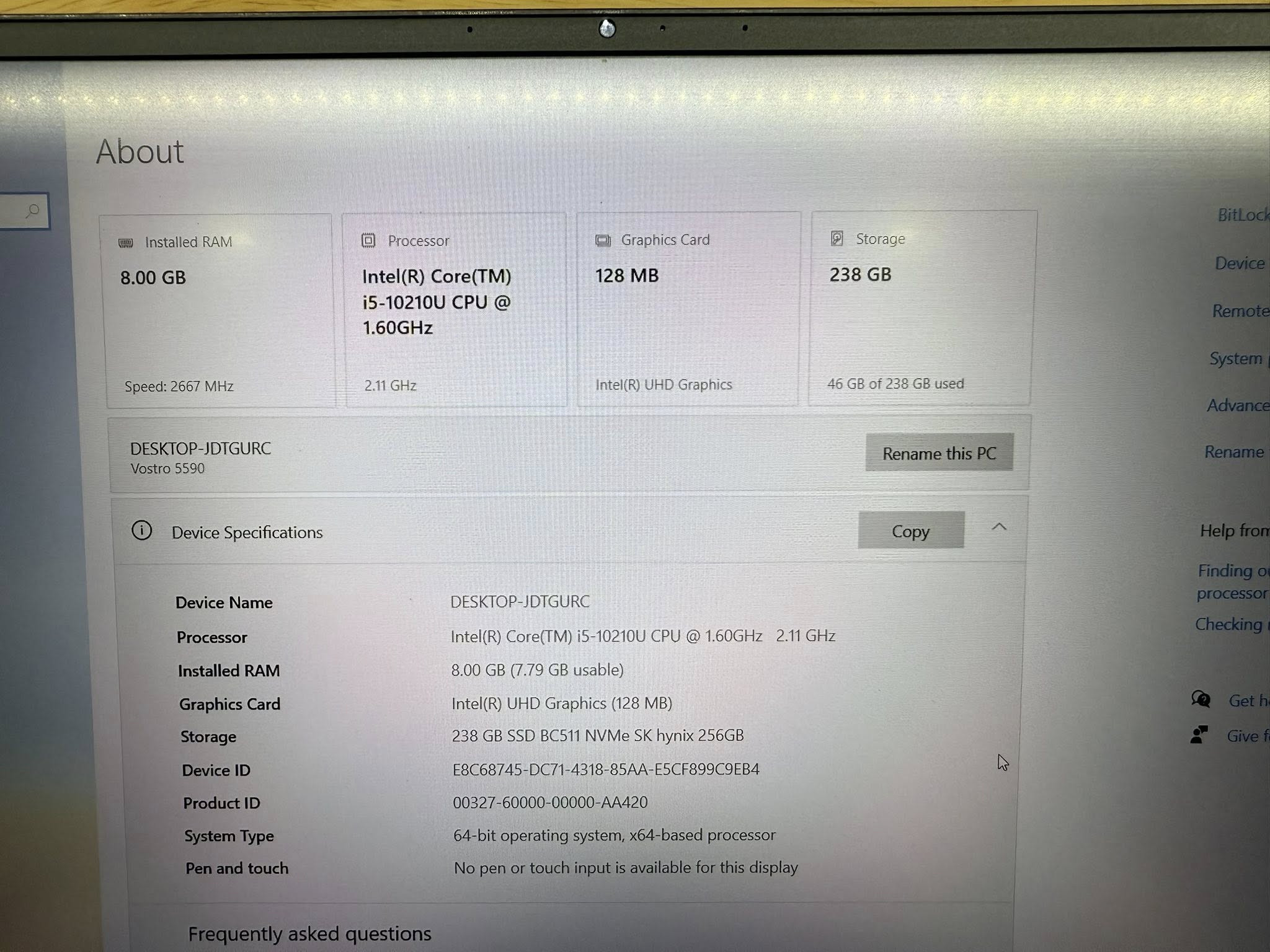 Mã sản phẩm: Dell Vostro 5590 Màu Grey I5 10200U/8G/256G/15.6 FHD full nhôm